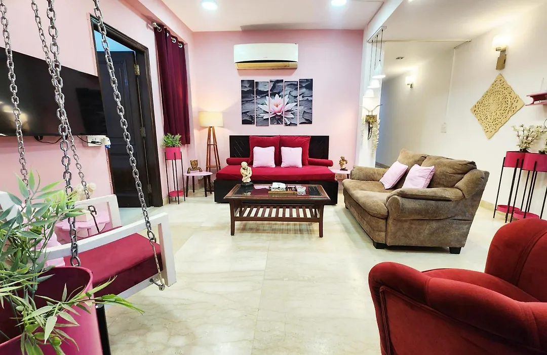 Luxurious Modern 2Bhk Prime Location Delhi Apartment comprises a balcony and a dressing room equipped with a flat-screen TV with satellite channels, as well as comforts like air conditioning. Further, the property offers a tile floor and is appointed with a sofa set and a work desk. A bathroom is fitted with a separate toilet and a shower, along with a hairdryer and towels, which are also provided.