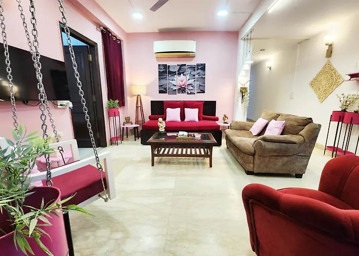 Located about a 5-minute ride from Kailash Colony underground station, the spacious 2-bedroom Luxurious Modern 2Bhk Prime Location Delhi Apartment also boasts proximity to Greater Kailash M Block. The apartment features Wi-Fi, along with free private parking for guests travelling by car.